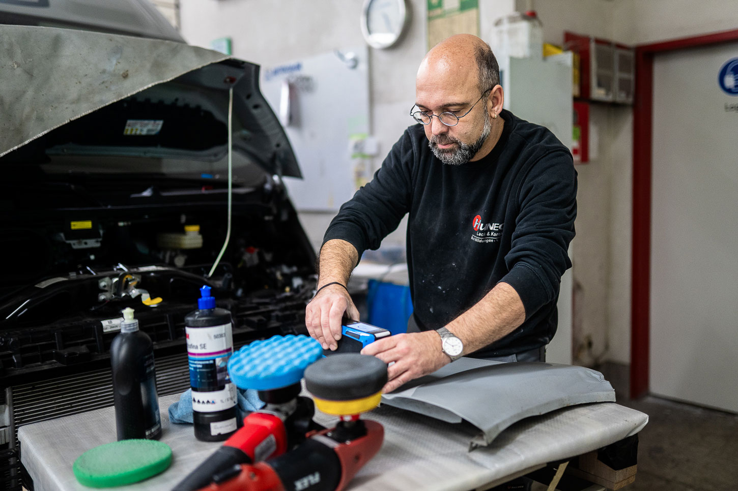 Bei Huneck Lack & Karosserie arbeiten erfahrene Fachkräfte in einer eingespielten und professionellen Arbeitsumgebung. Klare Abläufe, gegenseitiger Respekt und eine saubere Organisation sorgen dafür, dass jedes Fahrzeug zuverlässig und fachgerecht bearbeitet wird.Unser Team vereint langjährige Erfahrung in Lackierung und Unfallinstandsetzung mit modernen Arbeitsmethoden. Die Zusammenarbeit ist routiniert, die Kommunikation direkt und die Verantwortung klar geregelt – vom ersten Kontakt bis zur Fahrzeugübergabe.